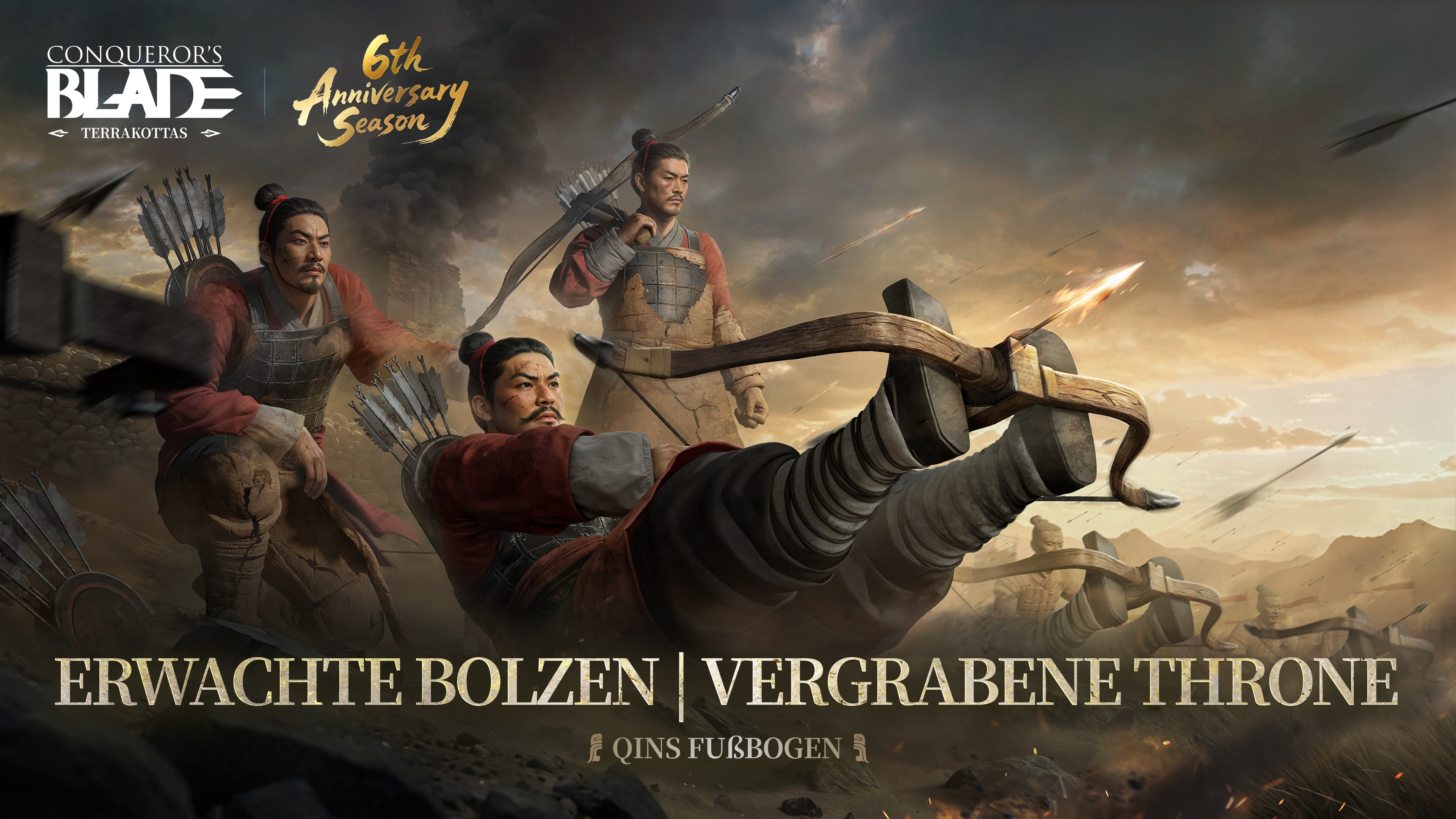 Bereite dich auf die neue Saison von Conqueror's Blade vor – erlebe, wie die Bolzen der Terrakotta-Armee über das Schlachtfeld fliegen und erschaffe Legenden in der Belagerungsführung!